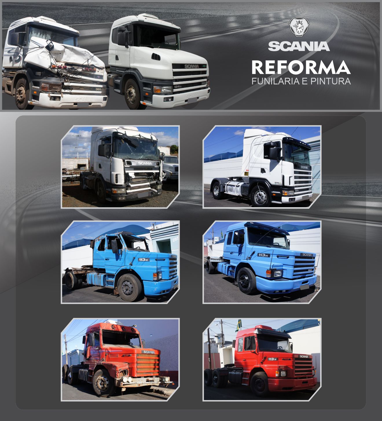 A Mascarello Cabines oferece servios completos de funilaria, pintura, tapearia e eltrica realizado de acordo com as normas de qualidade que prezamos dentro da nossa organizao, com o objetivo de trazer de volta a estrutura original de seu veculo.